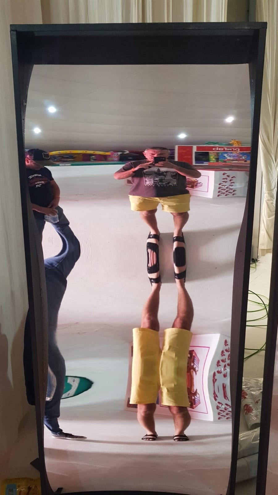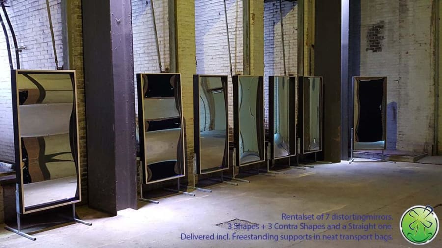 Distorting mirrors hire are a set of 7 different mirrors. Produced from the convex and concave shapes of the mirrors they will make peoples bodies distorted into hilarious images.